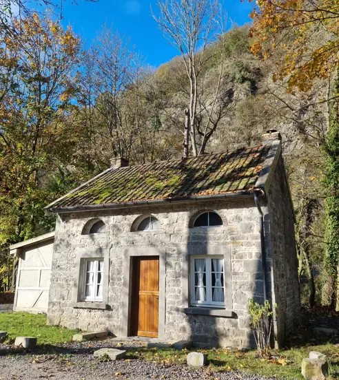 Op het domein van Château de Dieupart vind je een sfeervol gerenoveerd natuurhuisje – een plek om echt even offline te zijn. Geen tv, geen drukte, alleen het geluid van de rivier op de achtergrond. Binnen is het warm en knus: de houtkachel brandt, de voeten gaan omhoog en met een goed boek, een kaasje en een glaasje wijn kom je helemaal tot rust. Het huisje heeft een moderne keuken met vaatwasser, eigen sanitair en ligt pal aan het water.
